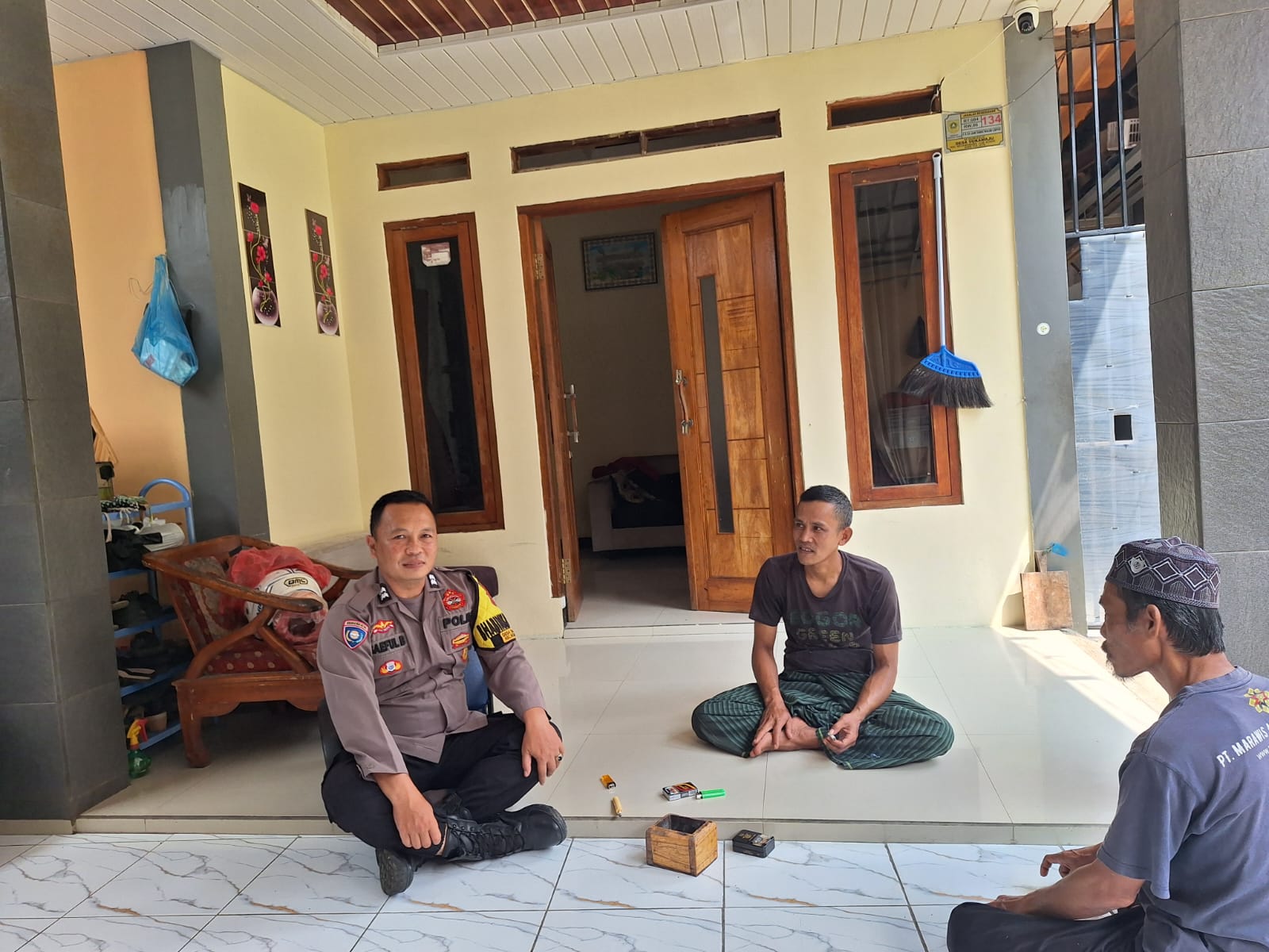 Dalam sambangnya, Bhabinkamtibmas melaksanakan dialog menyampaikan pesan kamtibmas agar meningkatkan kewaspadaan terhadap para pelaku kejahatan, dalam menjaga kamtibmas di wilayahnya. Jika mengetahui sesuatu hal yang mencurigakan atau kejadian menonjol, petugas agar segera melaporkan kepada pihak Kepolisian,” ujar anggota Bhabinkamtibmas.