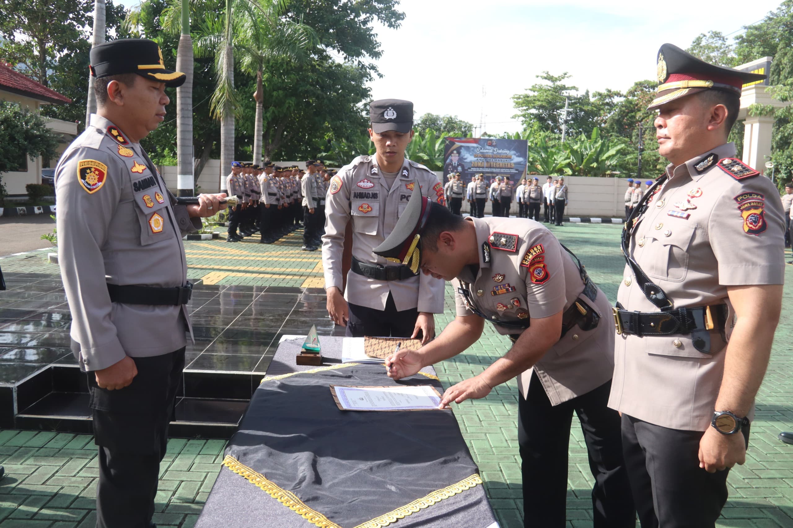 Turut hadir dalam kegiatan tersebut para pejabat utama, para Kapolsek jajaran, serta pasukan upacara dari berbagai satuan fungsi Polres Sukabumi. Dalam rangkaian sertijab tersebut, dilakukan rotasi sejumlah pejabat, yaitu :